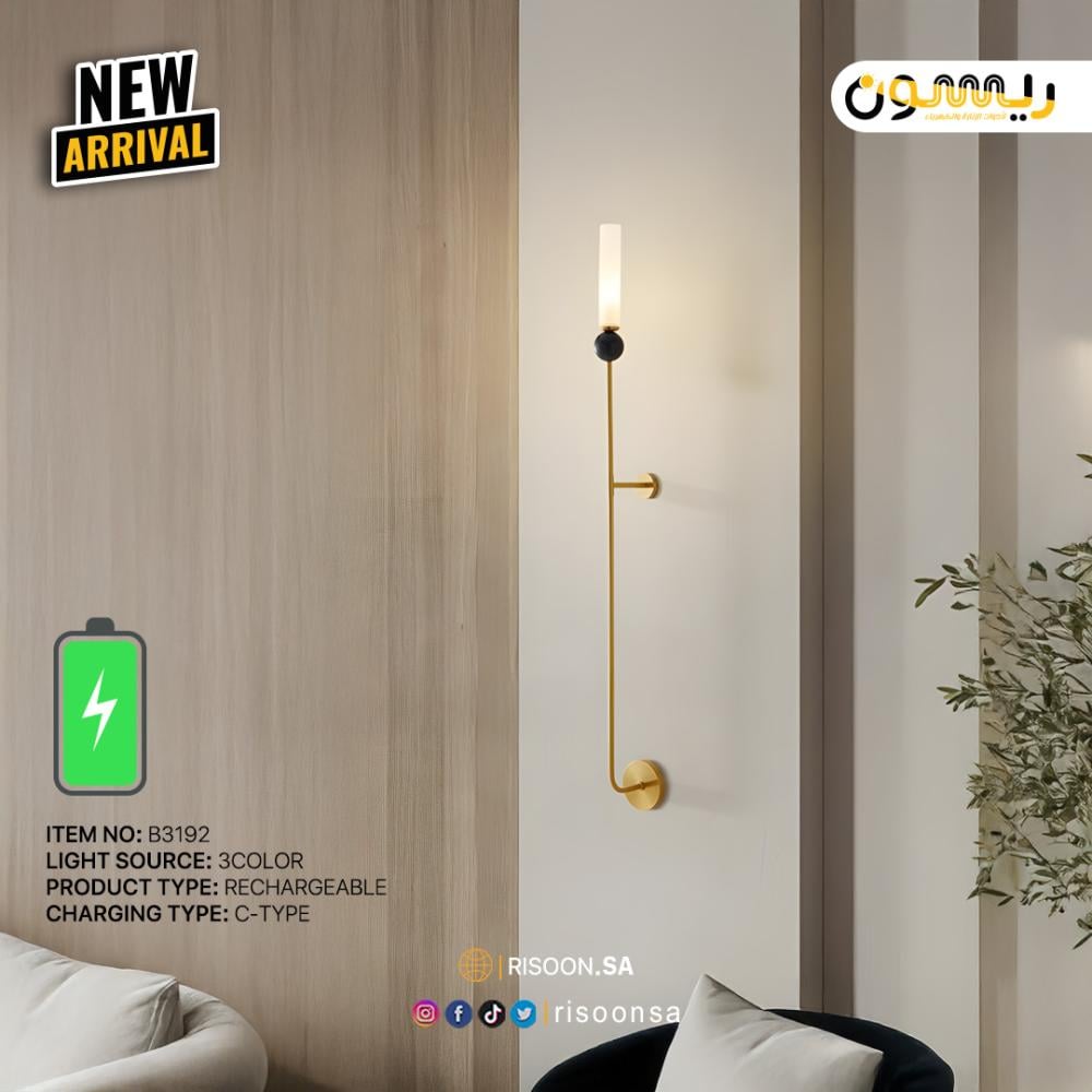 ابليك جداري عصري طويل قابل للشحن - إضاءة LED بثلاثة ألوان