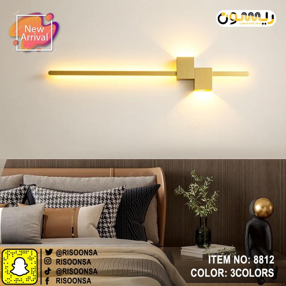 اضاءة جدارية وابليك جداري لون الشكل (ذهبي - برونزي ) بتصميم هادئ وأنيق مع اشراقة متعددة الألوان (أبيض - أصفر - شمسي ) بمقاسات مختلفة مقاس ( 120سم )